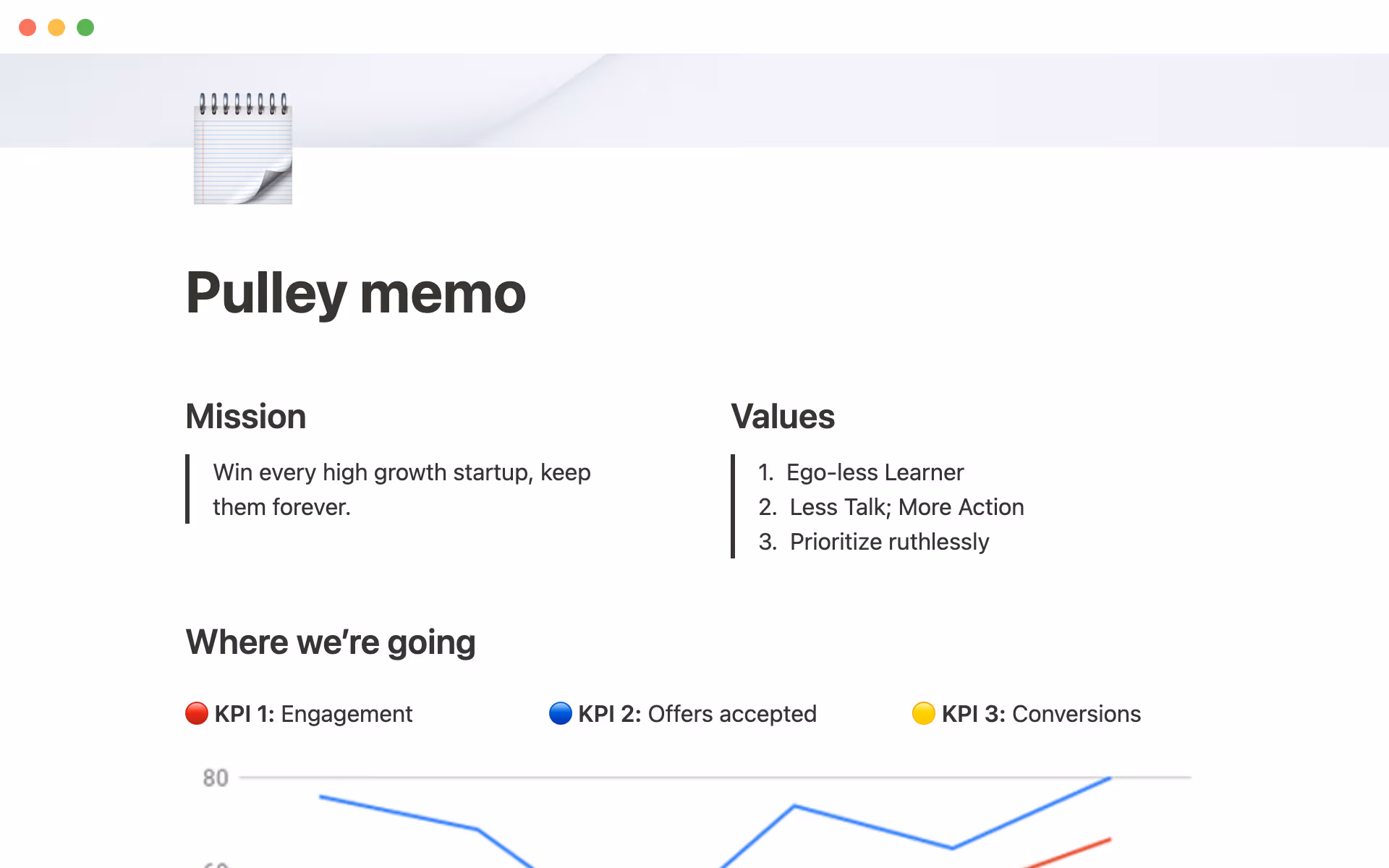 At work, Yin instilled a habit of documentation with her team, inspired by Amazon’s memo-heavy culture. “The faster you move as a startup, the more important written communication becomes to log every decision you make,” she says. She uses a template in Notion to send out team-wide updates, including reminders of their mission and values, plans for the quarter, and an embedded dashboard with key business metrics. That way, everyone can keep up with fast-paced shifts in priorities.